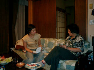 夜は長谷川家お好み焼き。あやさんとおばさん