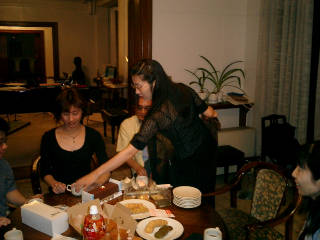 | ミコちゃんの買ってきたケーキを切り分けるわかなちゃん |