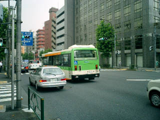 やっぱり。もう一度新目白通りをわたります。バスの納車でした。窓ガラスの中にナンバープレート |