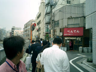 らーめん屋に並んでみました。でも、行列してる割にのれんがボロボロなのよね。しかも、並んでる間には誰も店から出てきませんでした。 |