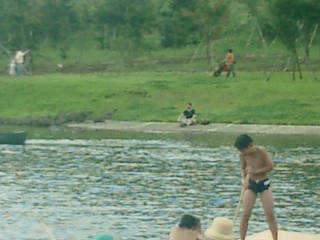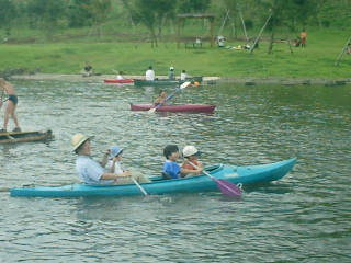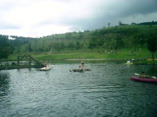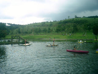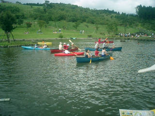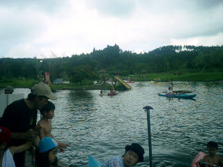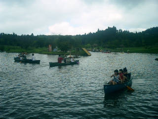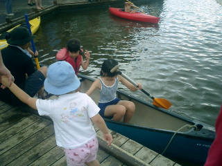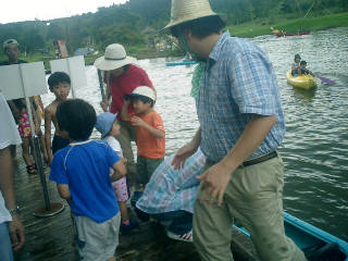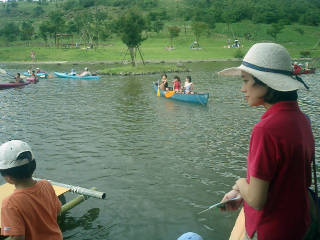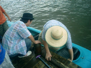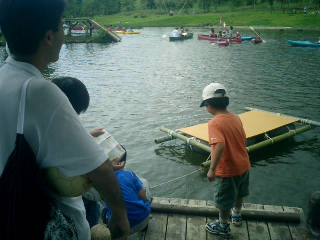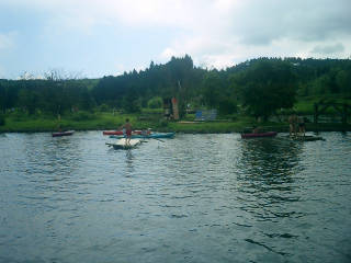 ボートに乗ります。この前に約一名イカダに乗ってたのですが。。。 |