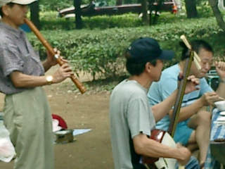 隣の尺八三味線が演奏開始。対抗するのは後でね |