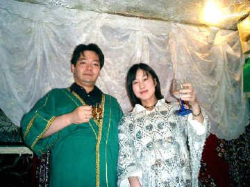 | 今回は代官ならぬ王様。むっちゃん曰く「アラブの商人やわ。もみ手してみ、サイフ隠さな」 |