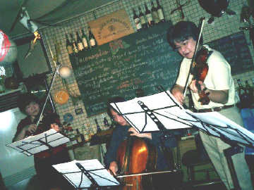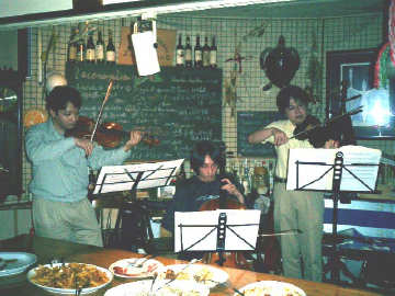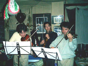 | 来た順で、まず、直ちゃんが一人で演奏してくれました。そのあと、直ちゃんみこちゃんよーへーあごさんで4Flの曲を。、 |