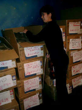 | 舞台袖に当たるバックスペースにて。初売り用の段ボール |