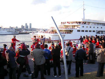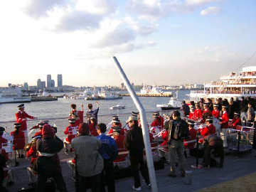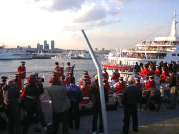 行ってまいりました。楽しかったですよ。出航ギリギリに行って焦りましたが。 写真送ります。あんまりわかりやすくは載せないでくださいね。 **サンの写真はないんですけど(撮ったけどNGですと)、また撮りまっす。 なぜか中華街でつばめの巣。でケーキ。ブリッジは真似してみました。あとはFとか マリンタワーとか。 で、ブラスバンドとかの写真があると思うんですが、今日はどうやら客船の入港日 だったようで、 お出迎えをしていました。その名も「Deutschland」。ドイツらしいです。 で、ミス横浜と準ミス(?)が着物で手を振っていました。 その後は刀削麺を食べました。削っているとこを何枚も撮ったのに、ちっとも写って ません。 てな感じでした〜。