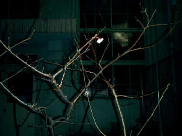 窓の中には紅白の鯨幕。昼間、卒業式の練習でしょうか、合唱が聞こえてました。