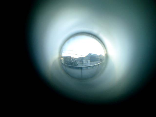 ドアの魚眼レンズから見た文化の中心。朝 |